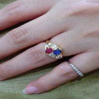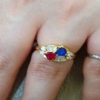 流當品拍賣 超美 豪華 天然 紅藍寶石 K金 鑽戒 喜歡價可議