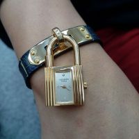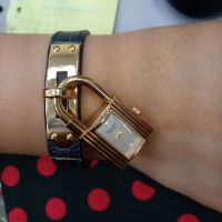 台中流當手錶拍賣 少有 原裝HERMES 愛馬仕 18K金 限量 kelly 鎖頭 石英女錶 9成新