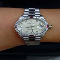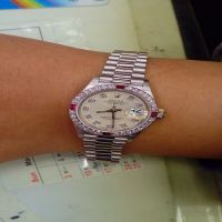 台中流當手錶拍賣 流當品拍賣 原裝 勞力士 69069 18K白金 原裝四紅寶鑽圈 十鑽面 自動 女錶 9成9新 盒單齊
